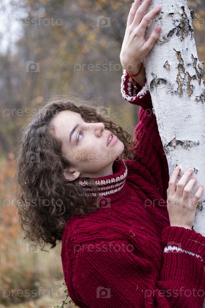 Красивая молодая девушка в осеннем лесу