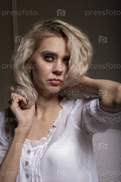 Блондинка с вечерним макияжем. Студийный портрет