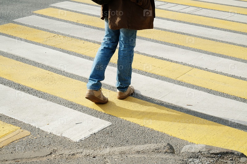 Мужчина переходит улицу по пешеходному переходу