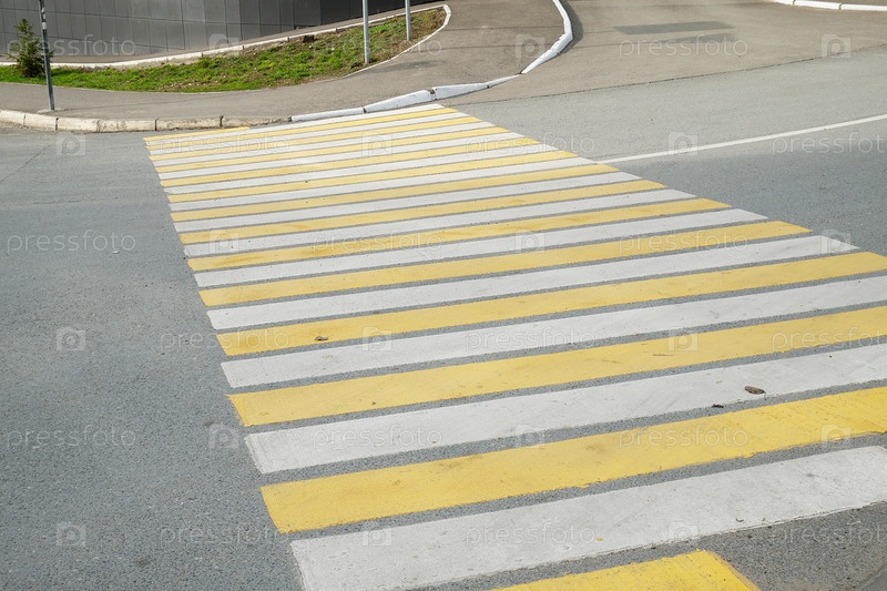 Белые и желтые полосы пешеходного перехода, пешеходный переход