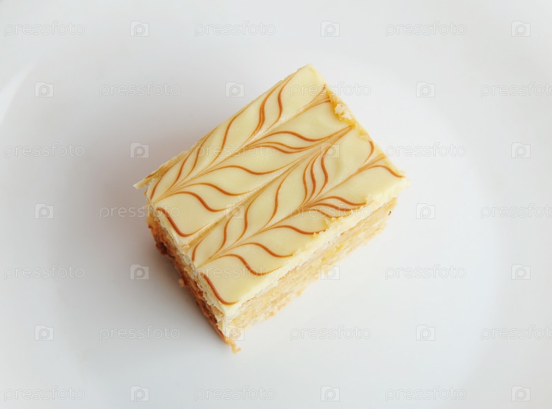 Кусок традиционного венгерского и австрийского торта Эстерхази на белом фоне