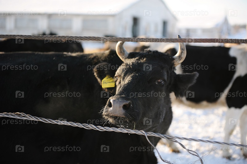 Коровы на русской ферме зимой