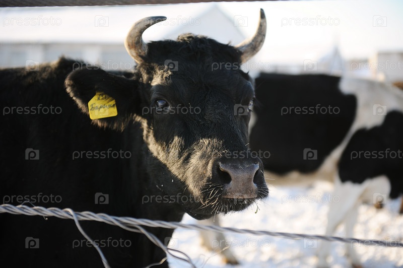 Коровы на русской ферме зимой