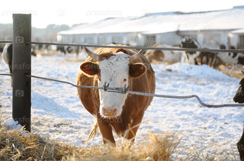 Коровы на русской ферме зимой