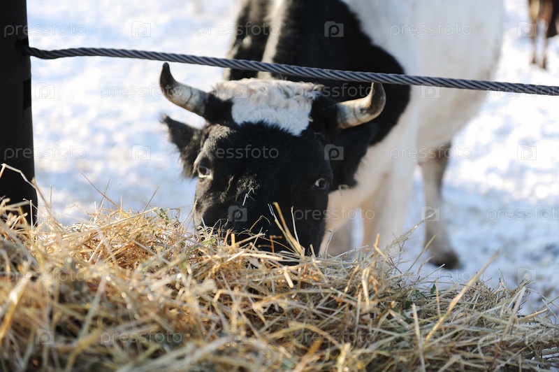 Коровы на русской ферме зимой