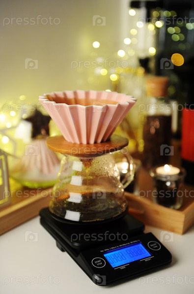 Ручное заваривание кофе с капельницей оригами в рождественском интерьере