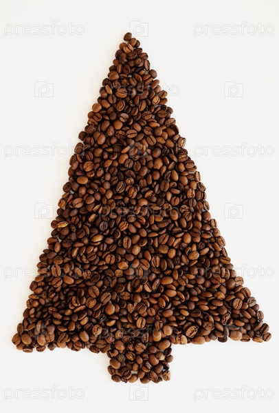 Рождественская елка из кофейных зерен на белом фоне изолирована