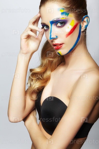 Молодая художница с акриловой краской на лице