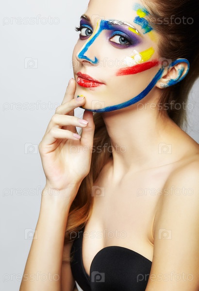 Молодая художница с акриловой краской на лице