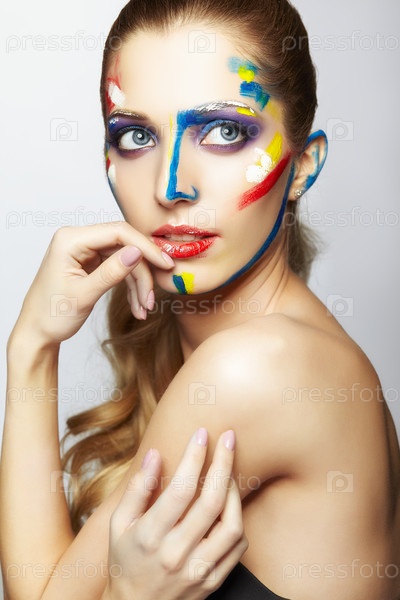 Молодая художница с акриловой краской на лице