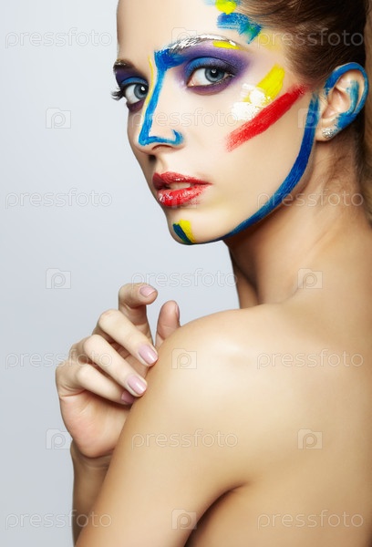 Молодая художница с акриловой краской на лице