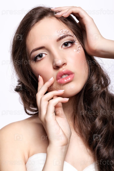 Портрет красивой молодой невесты брюнетки в белом свадебном платье