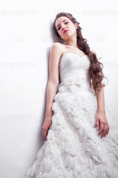 Портрет красивой молодой женщины-невесты в белом свадебном платье