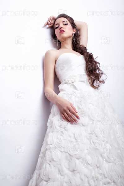 Портрет красивой молодой женщины-невесты в белом свадебном платье