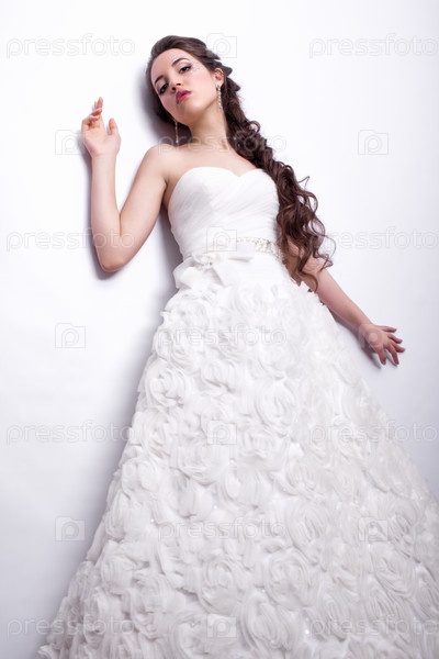 Портрет красивой молодой женщины-невесты в белом свадебном платье