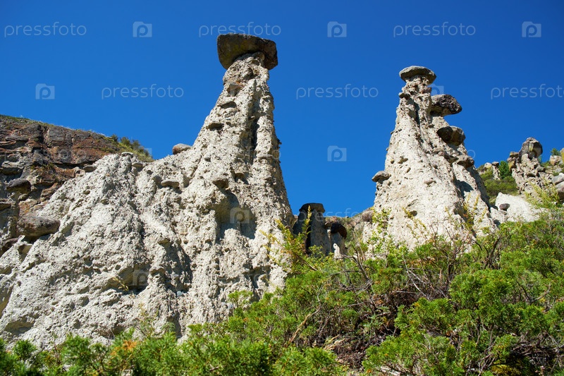Феномен природы и чудо природы Каменные грибы скалы в горах Алтая у реки Чулышман