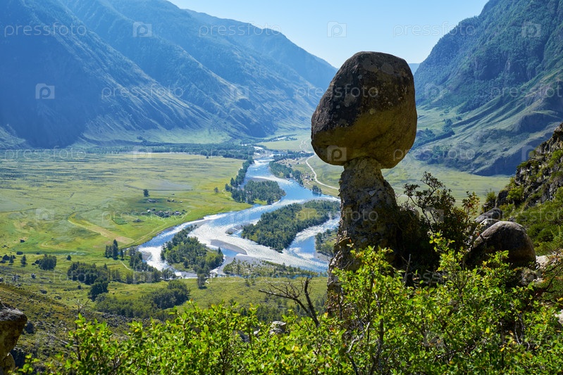 Феномен природы и чудо природы Каменные грибы скалы в горах Алтая и река Чулышман