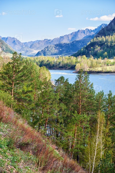 Алтайская река Катунь у горного села Чемал, Россия