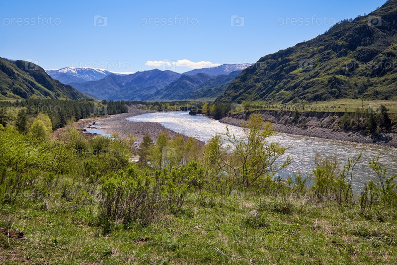Река Катунь у поселка Чемал, Алтай, Россия