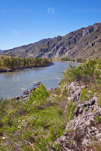 Река Катунь у поселка Чемал, Алтай, Россия