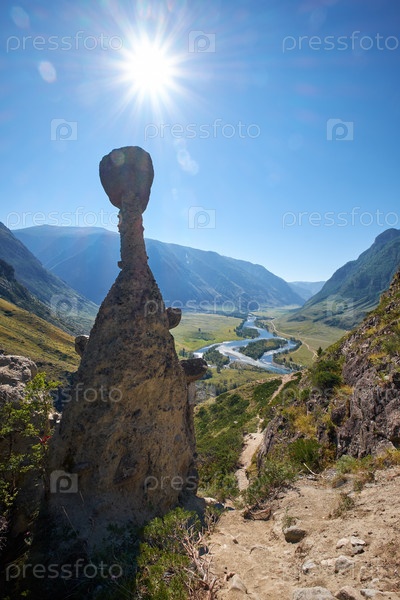 Феномен природы и чудо природы Каменные грибы скалы в горах Алтая под солнечными лучами