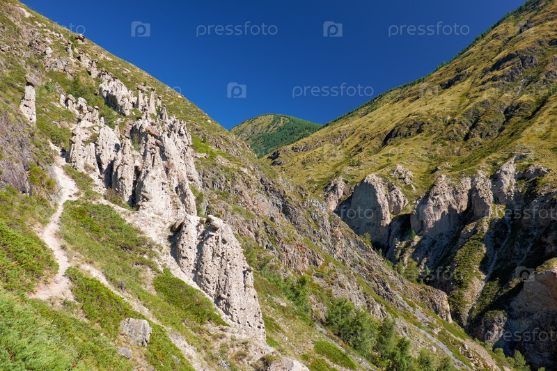 Феномен природы Каменные грибы в горах Алтая у реки Чулышман
