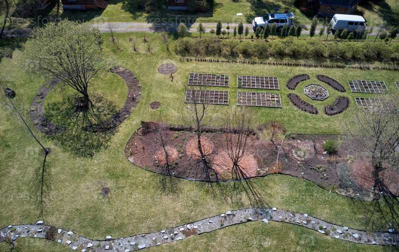 Вид с дрона с высоты птичьего полета на Горно-Алтайский ботанический сад