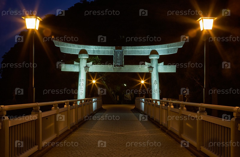 Ночной вид на мост от острова Таке до Гамагори, Япония