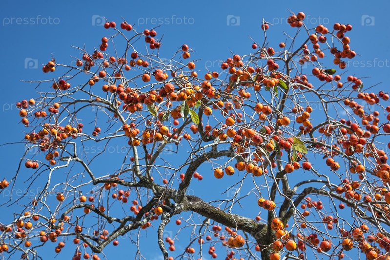 Плодоносящее дерево каки (японская хурма). Япония