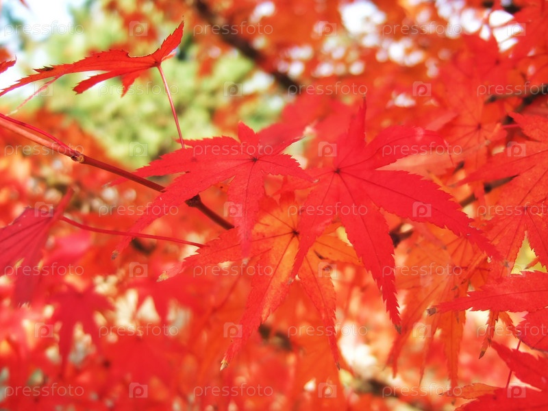 Красные листья клена осенью. Естественный фон осенней листвы клена