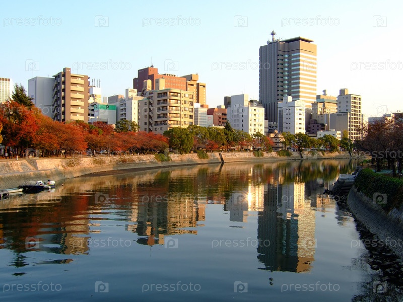 Река Ота в лучах заката. Хиросима. Япония