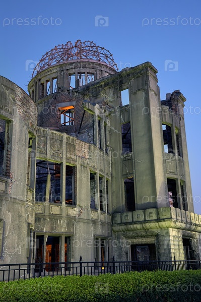 Скелетные руины купола атомной бомбы вечером. Хиросима. Япония