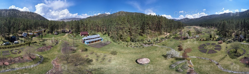 Панорама Горно-Алтайского ботанического сада с высоты птичьего полета