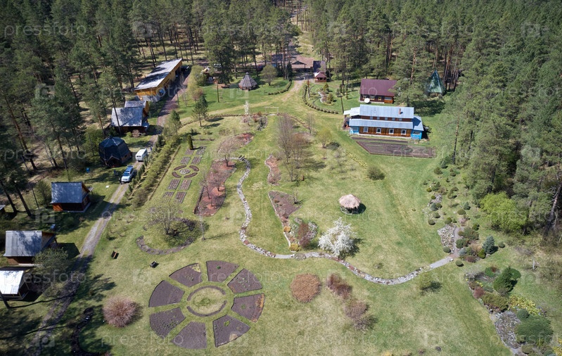 Вид с дрона с высоты птичьего полета на Горно-Алтайский ботанический сад