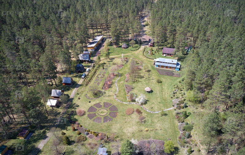 Вид с дрона с высоты птичьего полета на Горно-Алтайский ботанический сад