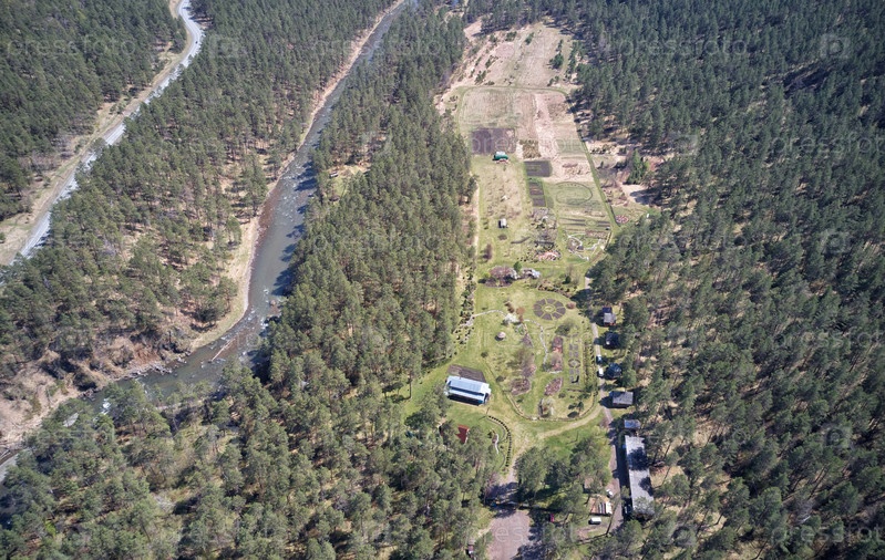 Вид с дрона с высоты птичьего полета на Горно-Алтайский ботанический сад