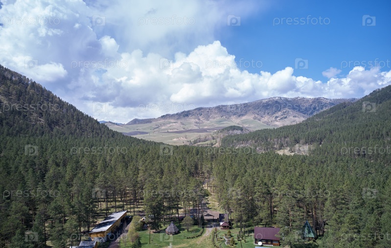 Вид с дрона с высоты птичьего полета на Горно-Алтайский ботанический сад