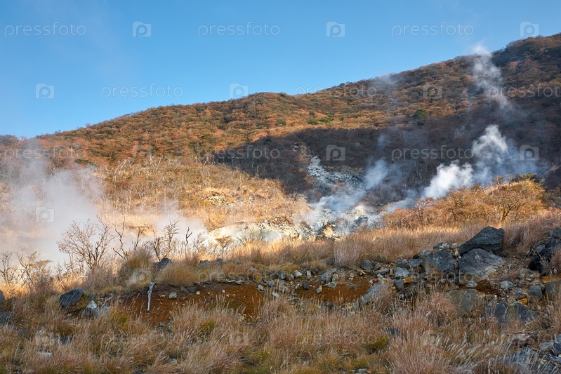 Сернистые пары на склоне долины Овакудани. Район Хаконе. Хонсю. Япония
