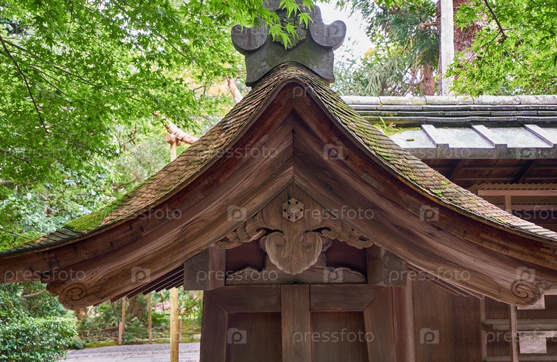 Традиционная японская крыша из коры кипариса в буддийском и синтоистском храме в Киото. Япония
