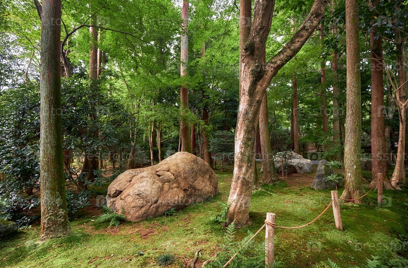 Традиционный японский моховой парк с кипарисами и кленами. Киото. Япония