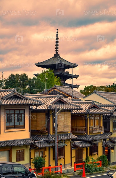 Башня Ясака, храм Хокан-дзи в центре района Гион, Хигасияма, Киото, Япония