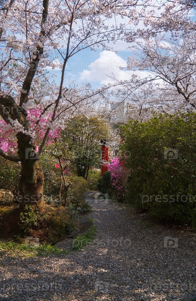 Фестиваль цветения сакуры (ханами) в Нагойском филиале храма Тие Инари. Нагоя. Япония