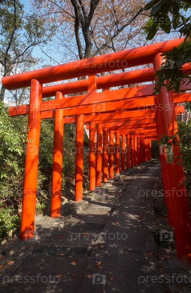 Красные ворота тори в Нагойском филиале храма Тие Инари. Нагоя. Япония