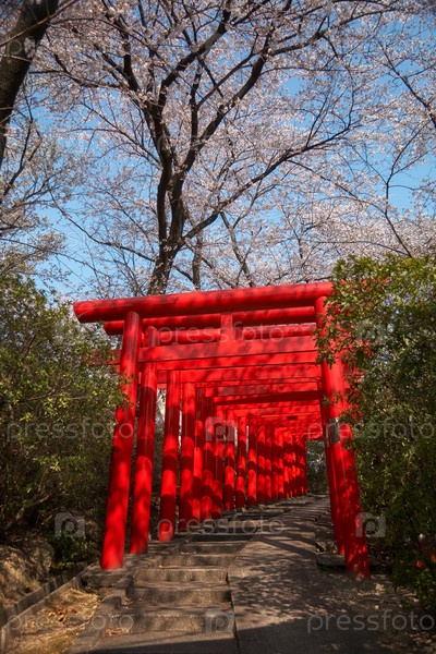 Красные ворота тори в Нагойском филиале храма Тие Инари. Нагоя. Япония