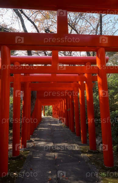 Красные ворота тори в Нагойском филиале храма Тие Инари. Нагоя. Япония