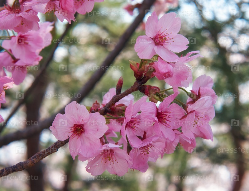 Розовая вишневая сакура цветет весной. Япония