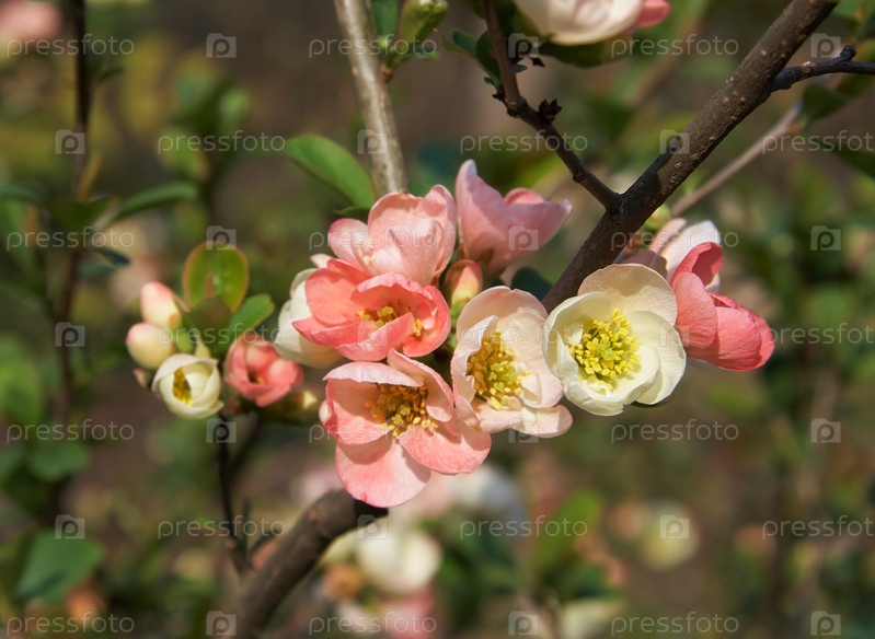 Китайская айва (Chaenomeles speciosa) в японском саду