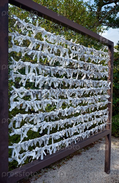 Омикудзи - бумажки для предсказания судьбы в храме Сикити-дзиндзя. Киото. Япония