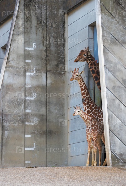 Семья жирафов в зоологическом саду Хигасияма в Нагое. Япония