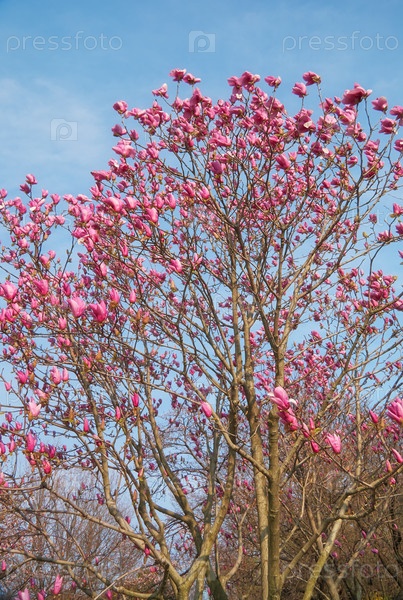 Фиолетовые японские магнолии цветут весной. Япония